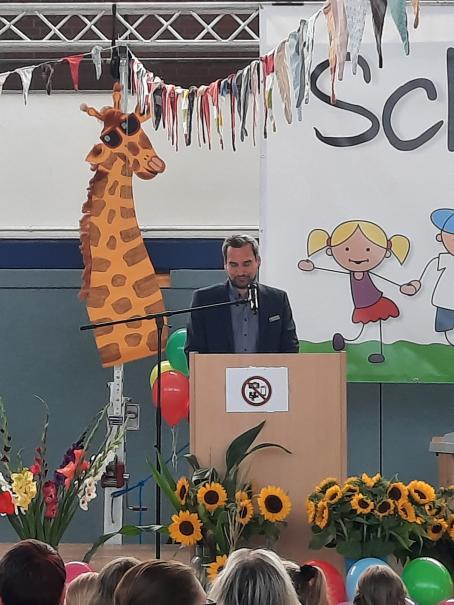 Moderiert wurde die Feier durch den Koordinator für die Jahrgänge 5 - 7 Herrn Kühn und es gab zahlreiche Redebeiträge unter anderem durch den Bürgermeister Herrn Wramp, den Bürgervorsteher Herrn Herrmann, die Schulleiterin Frau Behnke und durch Schülerinnen der sechsten Klasse sowie mehrere musikalische Beiträge. Während die Kinder im Anschluss ihre neuen Klassenlehrkräfte, den Klassenraum sowie die neuen Mitschüler*innen kennenlernten, konnten sich die Eltern bei Kaffee und Snacks über die Arbeit des Fördervereins und des Schulelternbeirats informieren. Zum Abschluss einer gelungenen Veranstaltung stiegen Seifenblasen in den Himmel, um so den neuen Lebensabschnitt einzuläuten.