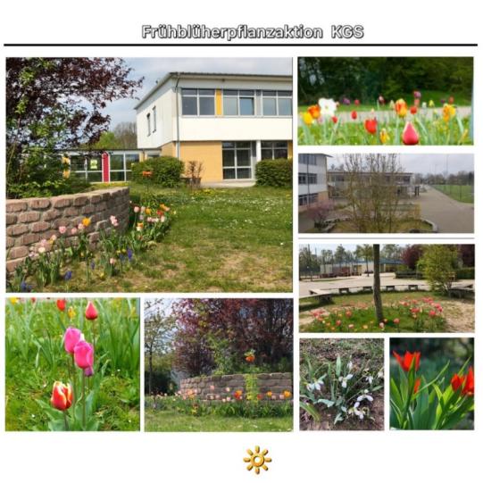 Die Schülerinnen und Schüler hinterlassen auf diese Art und Weise einen blühenden Fußabdruck, der zum einen unser Schulgelände optisch auffrischt, zum anderen bieten die Blüten der Zwiebelpflanzen Bienen Nahrung. Mit der Unterstützung der Bienen und anderen Insekten leisten auch wir einen kleinen Baustein zum Umweltschutz.