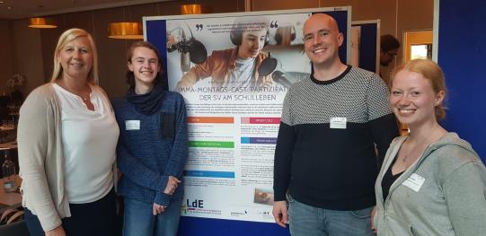 Für die KGS präsentierten Tiard, Indra (Jahrgang 10) und Herr Rönicke das Projekt der Schülervertretung der Immanuel-Kant Schule, die in diesem Zuge entstanden ist: Den „Imma-Montags-Cast“, über den seit Februar die Schülerinnen und Schüler wöchentlich über die anstehenden Termine, besondere internationale und nationale Tage, schulinterne Aufgaben und Aktionen der SV informiert werden. Zudem organisierte die SV auch den Waffelverkauf als Spendenaktion für die Ukraine und den Bunten Abend, der an der KGS stattfinden wird. Schulleiterin Frau Behnke und Herr Jakobs, in Vertretung für Frau Kahre, waren ebenfalls vor Ort, um die Projekte der eigenen und anderer teilnehmenden Schulen zu würdigen und über tolle andere Projekte zu staunen wie z.B. eine Spendenaktionen für soziale Projekte, eine neue Schulhofgestaltung, das Anlegen einer Insektenwiese, uvm. Frau Behnke freut sich sehr für die Schule über das Engagement der Lehrkräfte und der Schülerinnen und Schüler der Schülervertretung. Sie blickt zuversichtlich auf die nächsten Schuljahre, in denen es auch durch einen neu etablierten WPU in diesem Zusammenhang viele weitere Projekte an der KGS im Rahmen des LdE geben soll.