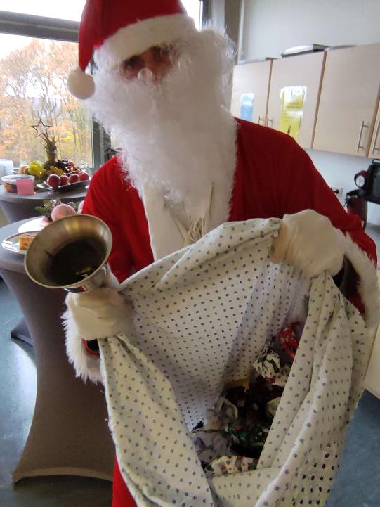 Am Dienstag gab es überraschenden Besuch in der KGS Reinfeld: Der Nikolaus kam mit rotem Mantel, Mütze, Bart und einem Sack voller Geschenke ins Lehrerzimmer und sorgte für Stimmung unter den Lehrkräften. Nachdem Gedichte aufgesagt und ein Weihnachtslied gesungen wurden, gab es für jede Kollegin und jeden Kollegen ein kleines Geschenk. Diese in selbstgenähten Stofftaschen hübsch verpackten Päckchen wurden auch in diesem Jahr vom Elternbeirat gesponsert, der dem Kollegium für die tolle Arbeit danken wollte. Danach drehte der Nikolaus noch eine Runde durchs Schulgebäude und überprüfte, ob auch dort alle artig gewesen sind. Das Kollegium bedankt sich ganz herzlich bei allen Beteiligten und wünscht eine schöne Vorweihnachtszeit!